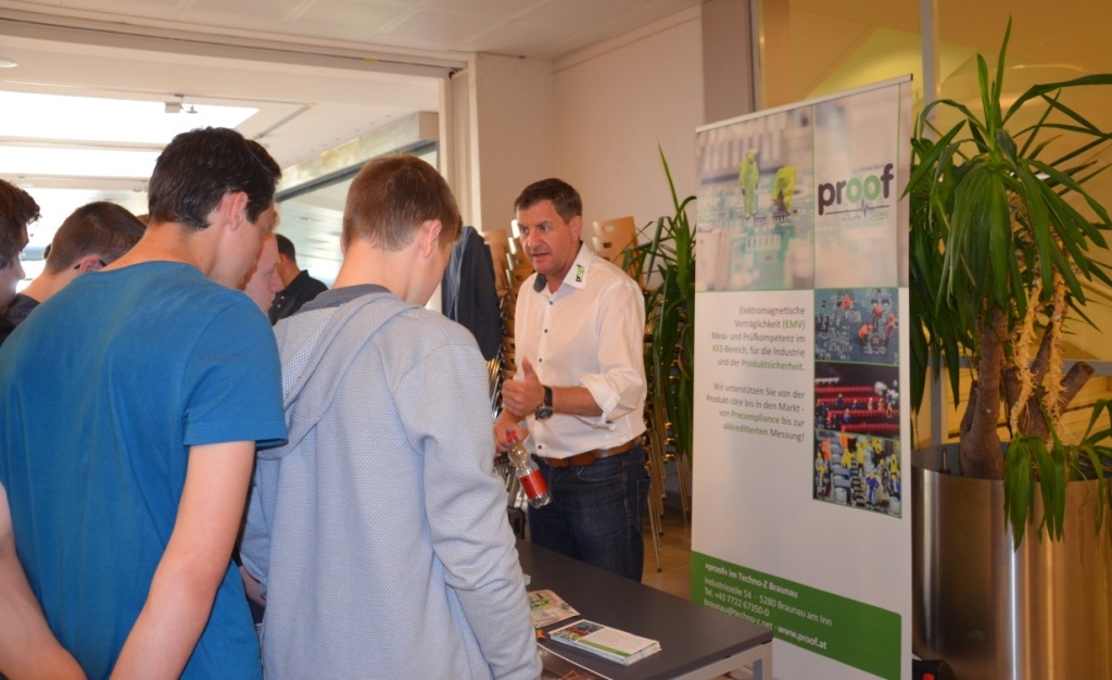 Am 9. Mai fand nun die Startveranstaltung des neuen Projektes "HTL technical coaching" statt. 11 Unternehmen, bzw. 11 Mentoren der Unternehmen stellten sich bei den 3. Klassen der HTL Braunau vor. Nach der kurzen Vorstellrunde konnten sich die HTL Schülerinnen und Schüler bei den Messeständen noch genauere Infos über das Unternehmen einholen. Auch wir, das Techno-Z Braunau stellte sich mit unserem Prüflabor "Proof" vor. Herr Ibinger wird der persönliche Coach/Mentor für einen HTL Schüler / eine HTL Schülerin über 2 Jahre sein und viele offene Fragen beantworten.